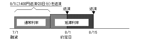 8/15での返済利息は、未払い利息が残っているので、返済額はすべて延滞利率